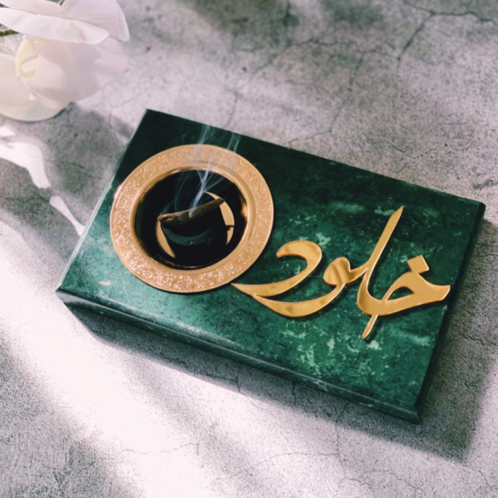 • مبخرة الرخام الطبيعي مصنوعة من اجواد انواع الرخام و تتميز بالاسم المصنع من مادة الأكريليك الذهبي لتضيف لمسة ذهبية للمبخرة.