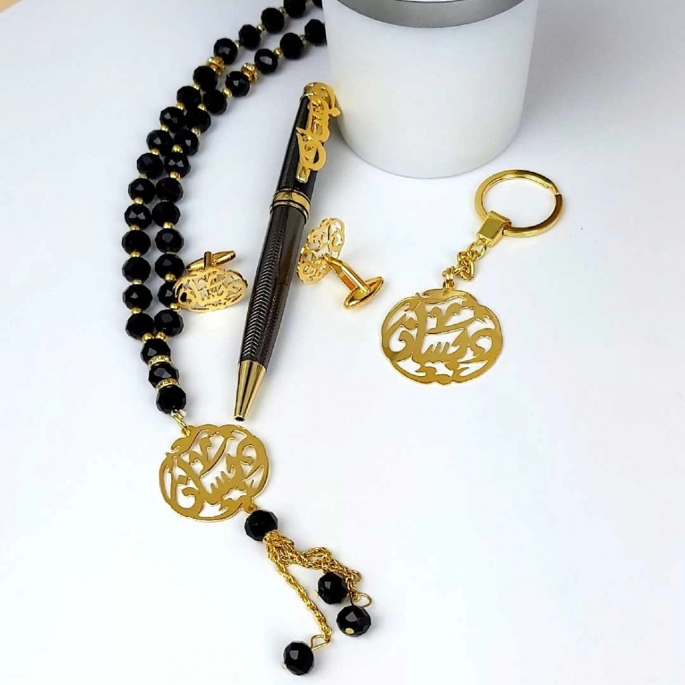 طقم رجالي مثالي مكون من 5 قطع خلابة (قلم، سبحة، ميدالية، زوجين من الكبك) بحيث يكون أروع هدية يقدمها العميل للشخص الذي يحبه، فالطقم مصمم بعناية فائقة لينال إعجاب كافة عملاؤنا، والطقم له موديلات متنوعة يستطيع أن يختار العميل منها ما يناسبه ويناسب أصدقائه.