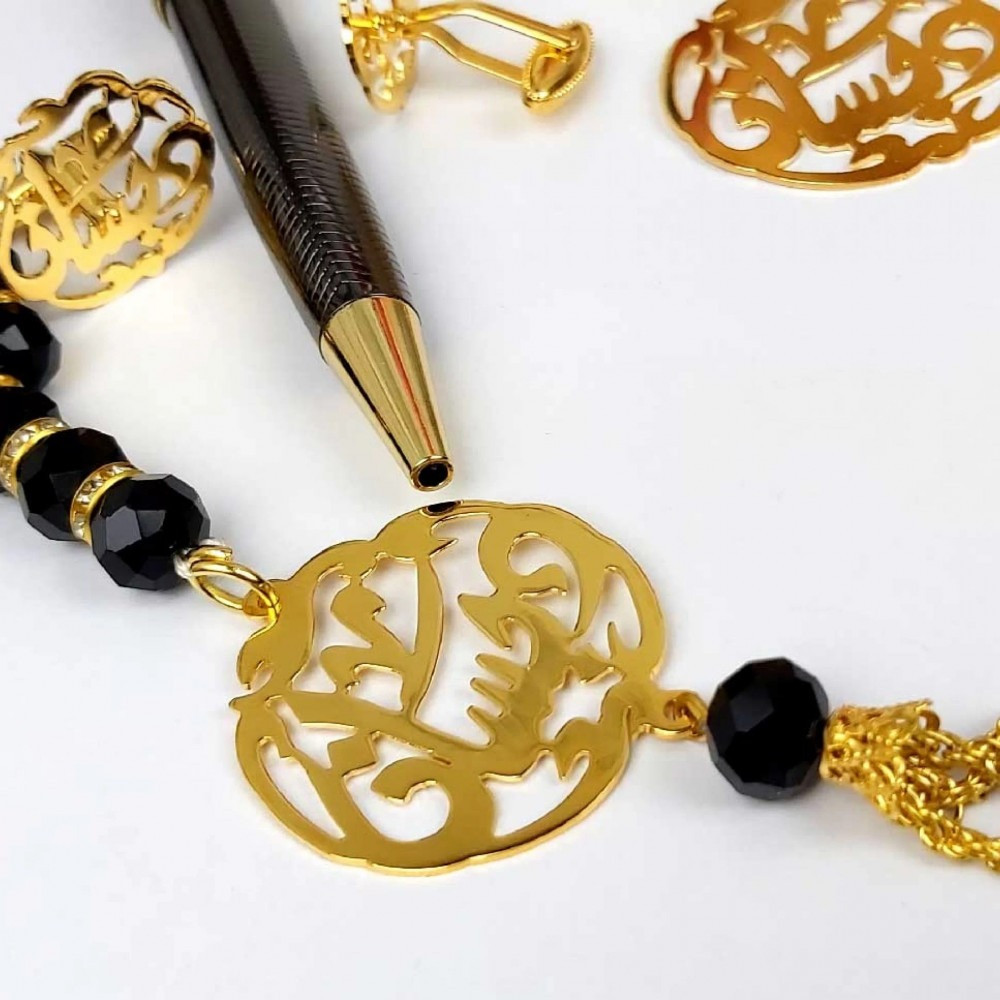 طقم رجالي 5 قطع بالاسم مطلي بالذهب او الفضة