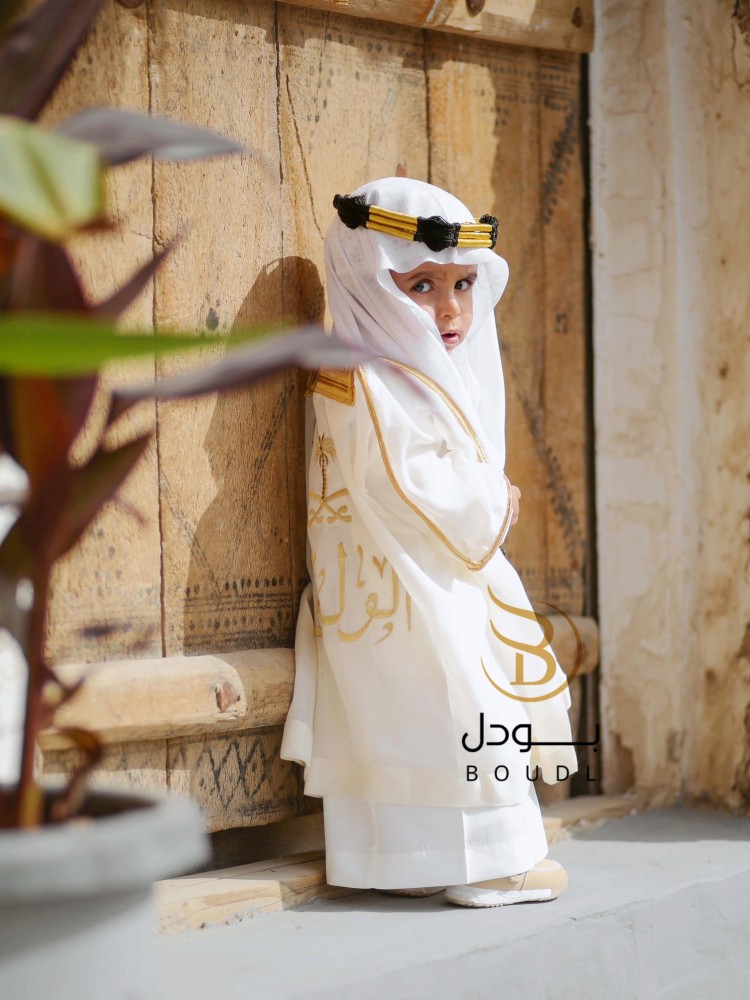 بكج ولادي يوم التأسيستميز بتصميم خاص جميل بالفخامة والأناقة وبجودة عالية.يتكون المنتج من اربع قطع:. بشت مطرز بالاسم حسب الطلب. عقال الملك فيصل. طاقية. شماغ ابيض