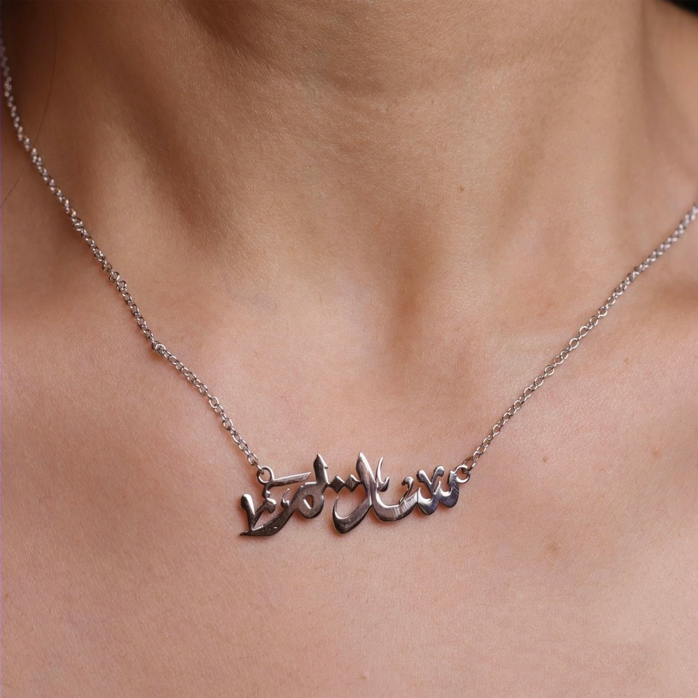 معلومات المنتج:• مطلي بالذهب عيار 21 قيراط.• يمكنك تخصيص أي اسم أو كلمة (عربي أو إنجليزي).• متوفر طلاء ذهبي أو فضي (روديوم).• ضمان سنتين على اللون من بودل.• سمك 0.7 مم.• تأتي داخل علبة هدايا بسيطة وكيس عليها شعار بودل.